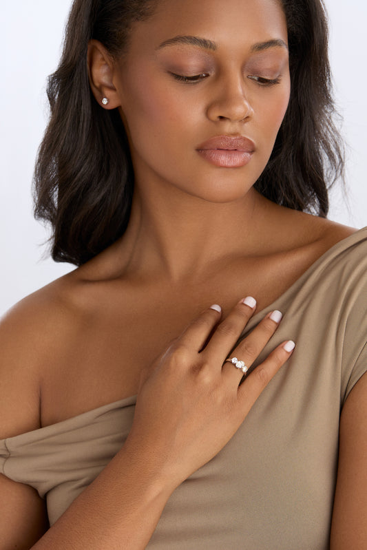 18K White Gold 1.82 ct Oval & Round Three Stone Ring