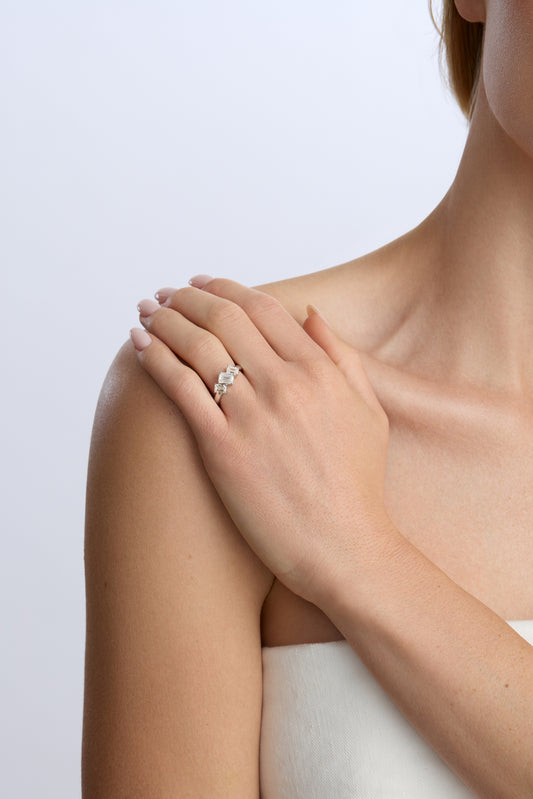 18K White Gold 2.03 ct Three Stone Emerald Cut Diamond Ring