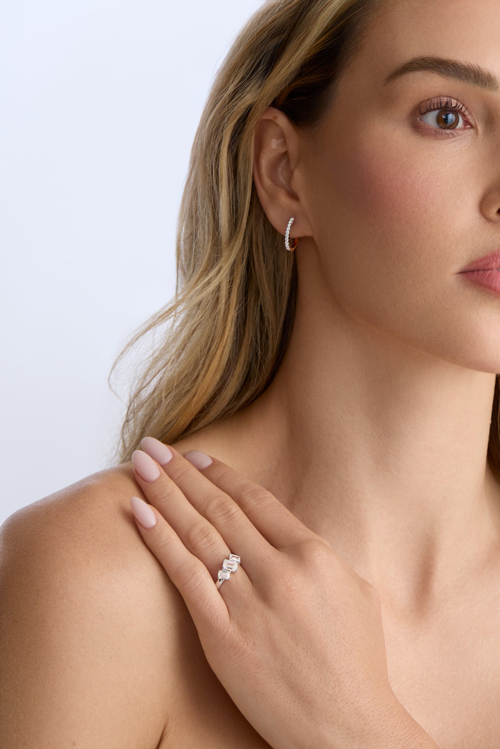 The glow of 18K white gold and the sparkle of round diamonds come together in a design that is balanced, versatile, and destined to become a jewelry box essential.