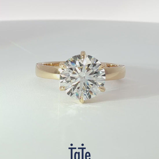 • 18K yellow gold solitaire shank with hidden halo