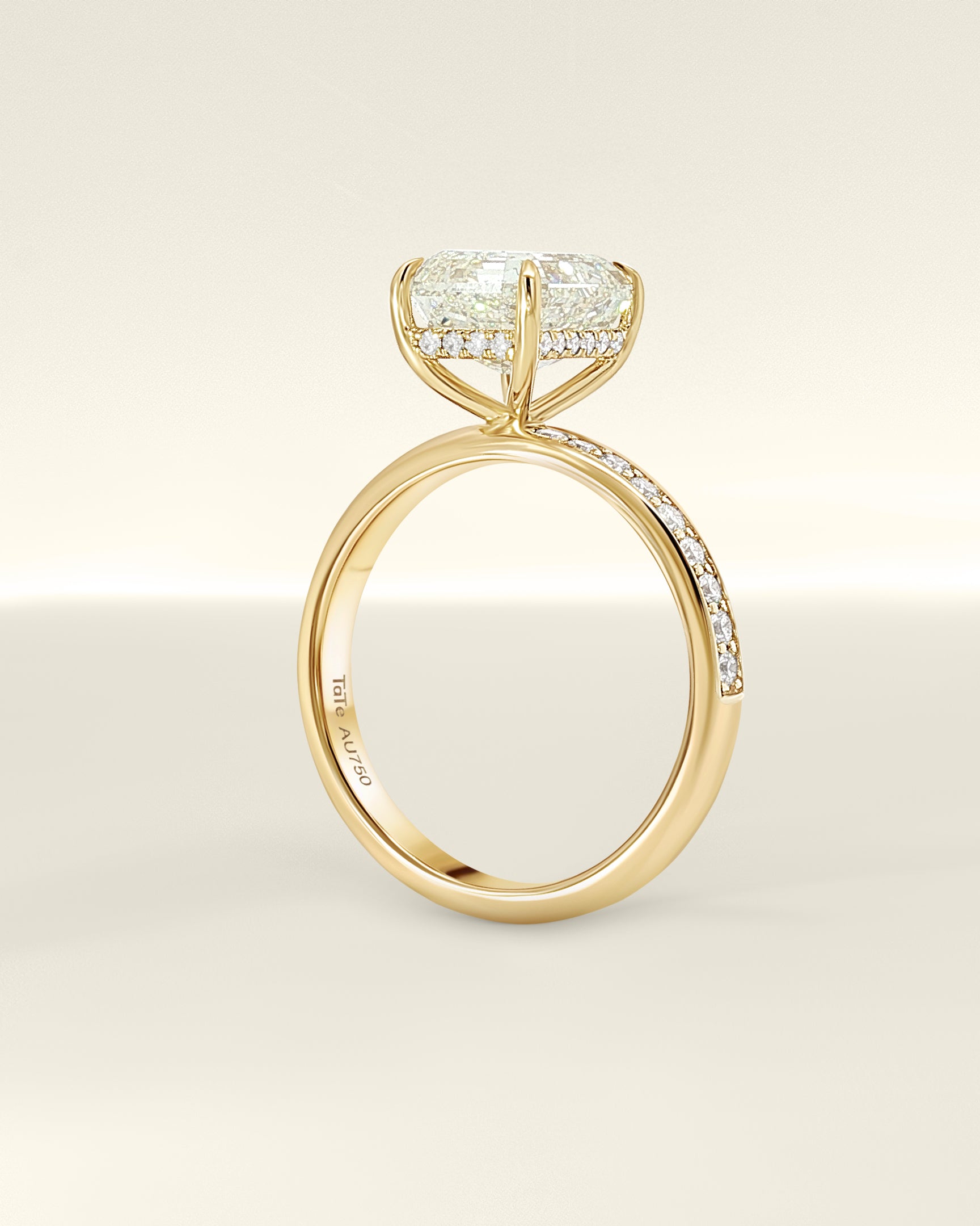 • 18K yellow gold solitaire shank with hidden halo