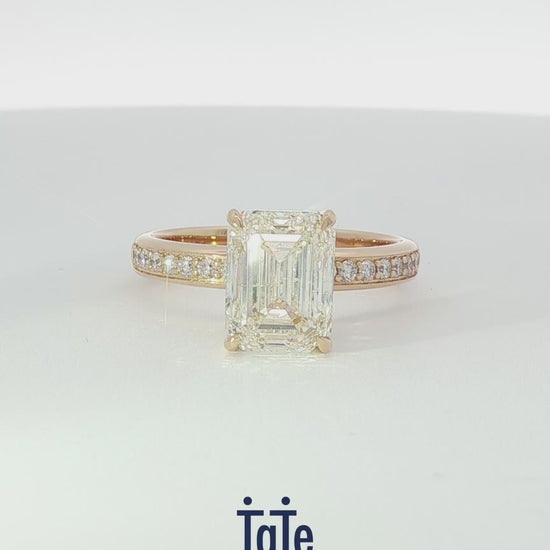 The solitaire design is elevated with a hidden halo that enhances the diamond’s inner fire while preserving the elegance of a classic silhouette. The elongated emerald-cut diamond is framed by subtle brilliance beneath the surface, creating depth and radiance from every angle. Crafted in yellow gold, this ring exudes warmth, refinement, and understated sophistication.