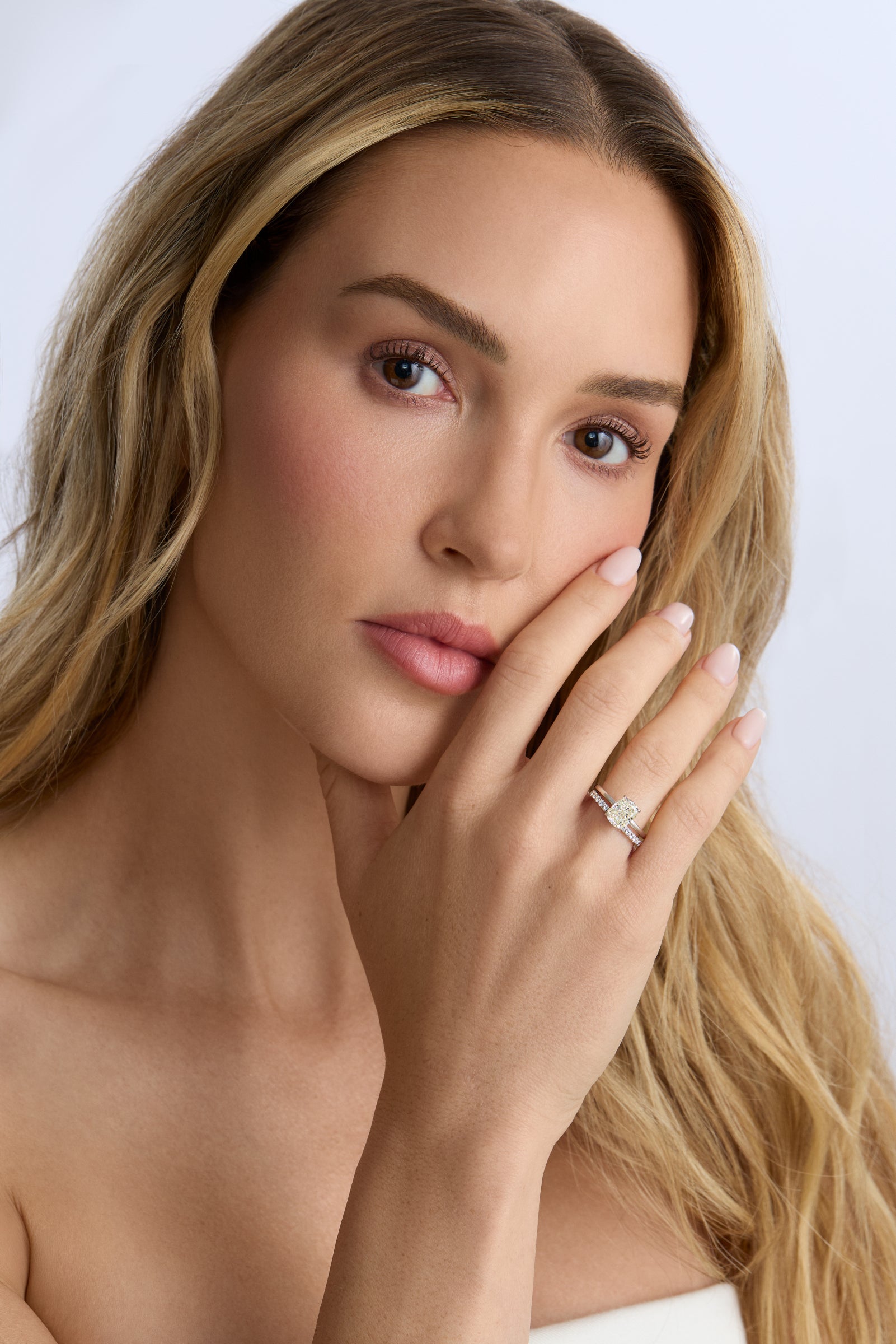 At its heart, a 2.52 ct elongated cushion-cut diamond reveals brilliance at every angle, secured by claw prongs that heighten its presence. Set upon a cathedral shank of luminous 18K white gold, blending timeless grace with contemporary refinement.