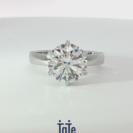 • Platinum solitaire shank with hidden halo