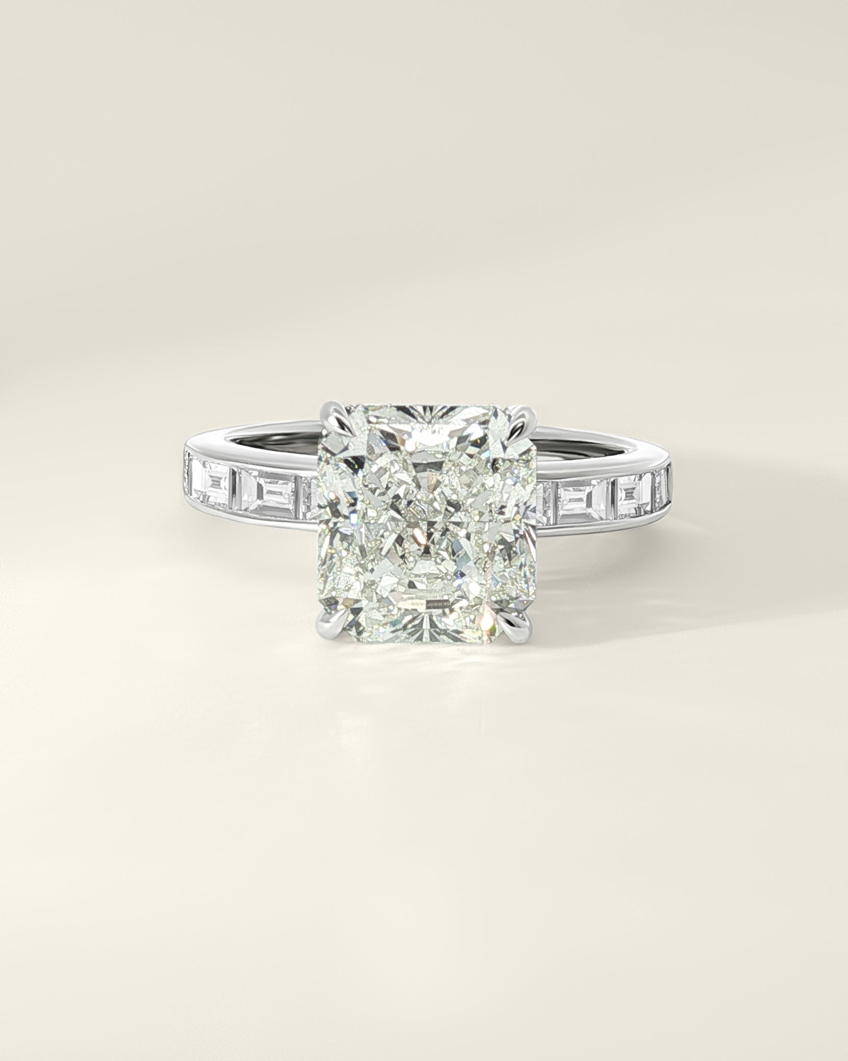 The Signature Solitaire collection celebrates timeless design and exceptional craftsmanship. This radiant-cut diamond, with its crisp facets and mirror-like reflections, is set within TaTe’s Signature T basket for both strength and brilliance. Crafted in platinum, the ring embodies understated elegance with a distinctly modern edge.